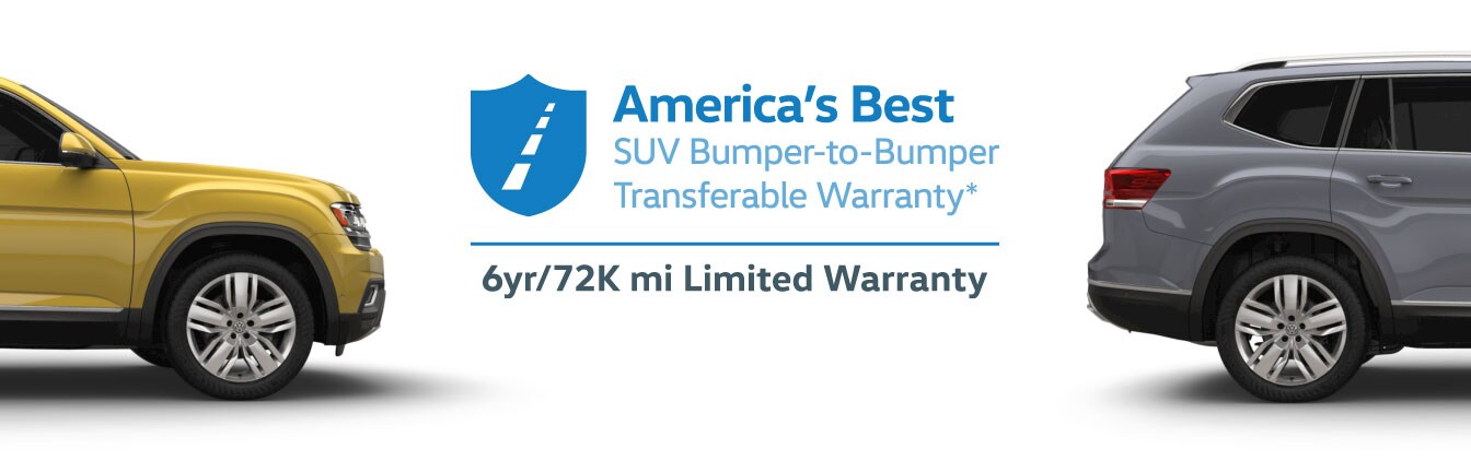 * MY2018 Atlas 6 years/72,000 miles (whichever occurs first) New Vehicle Limited Warranty. Based on manufacturers published data on transferable Bumper-to-bumper/Basic warranty only. Not based on other separate warranties. See owner's literature or dealer for warranty limitations.